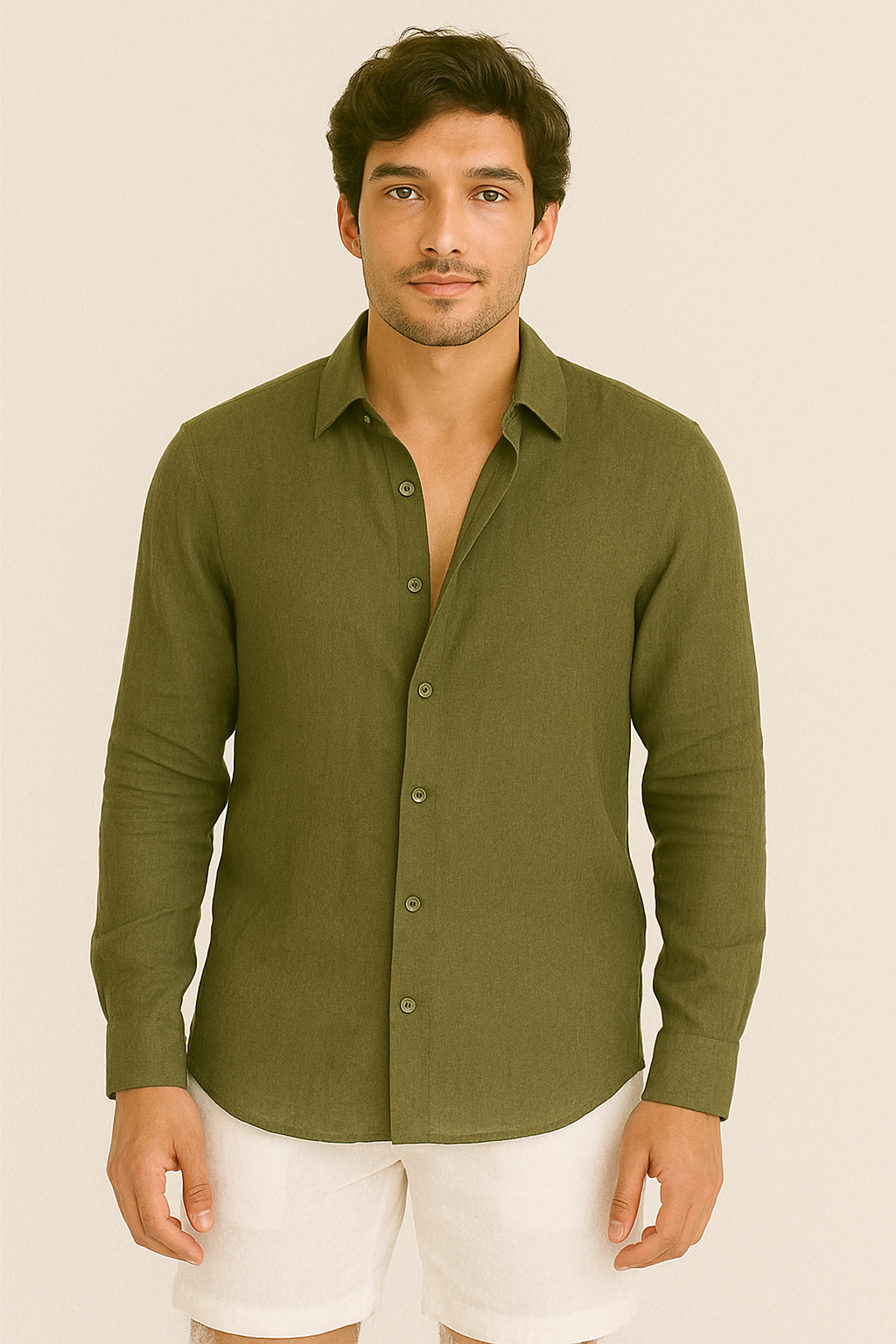 MILITARY GREEN – RELAXED FIT PREMIUM LINEN-BLEND SHIRT